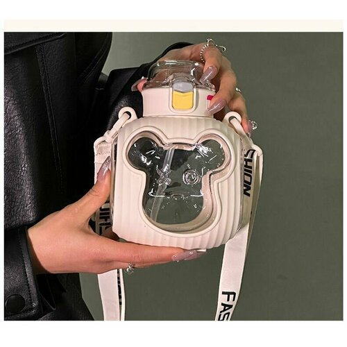 Стильный поильник с ремешком и кнопкой 900 мл /Белый Bearbrick