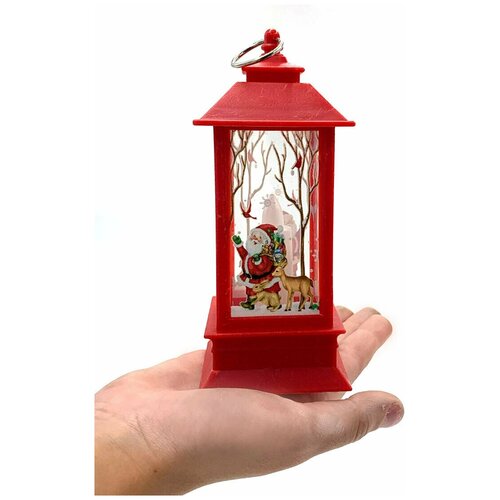 Елочное украшение новогодний фонарь светильник с подсветкой "Дед Мороз" 14см, красный