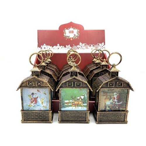 Елочное украшение новогодний фонарь светильник с подсветкой "Домик" 12см