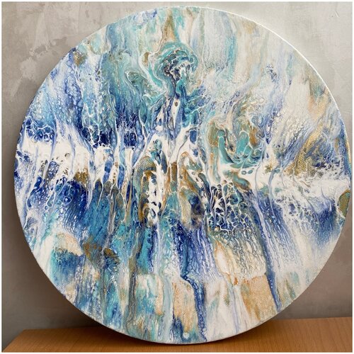 Картина интерьерная круглая. Диаметр 35 см. Акрил. Выполнена в технике флюид-арт (жидкий акрил)