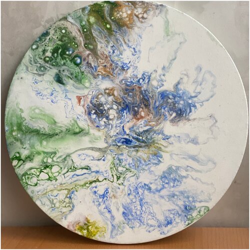 Картина круглая. Диаметр 35 см. Акрил. Выполнена в технике флюид-арт (жидкий акрил)