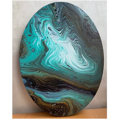 Картина интерьерная овальная. Размер 40 на 30 см. Без рамы. Акрил. Выполнена в технике флюид-арт (жидкий акрил)