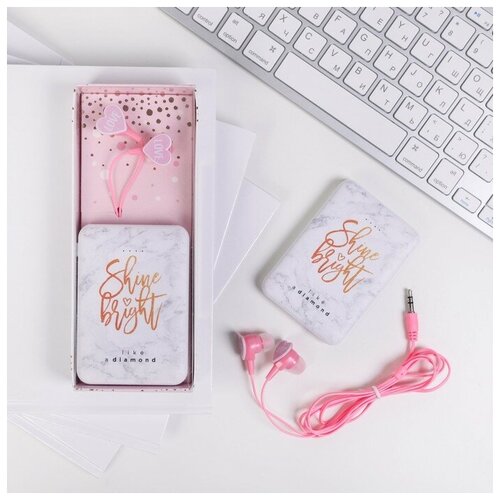 Набор маска для сна, наушники вакуумные и внешний аккумулятор 5000 mAh Love, 20,5 х 16,5 см