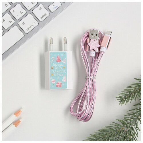 Набор держатель для провода+кабель Type-C «С новым годом», 1А, 1м