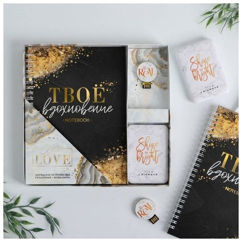 Набор флеш-карта, ежедневник, внешний аккумулятор 5000 mAh «Вдохновение», 21,5 х 21,5 см 100038884476