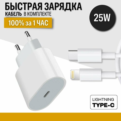 Комплект сетевой блок питания 25W с кабелем USB-C Lightning, 1 метр / белый / быстрая зарядка