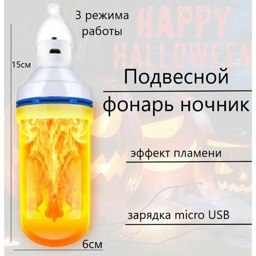Подвесной Фонарь ночник с эффектом пламени, 3 режима, USB-зарядка
