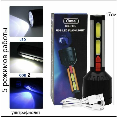 Фонарик аккумуляторный ручной светодиодный