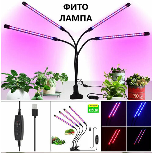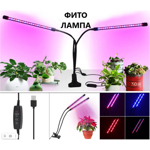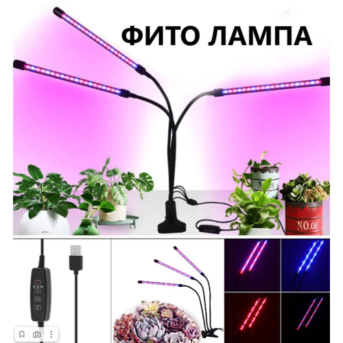 Фитолампа для растений светодиодная полного спектра / Ултрофиолетовая / Лампа для рассады/ Фитосветильник LED на прищепке с таймером