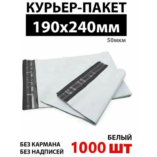 Курьерский пакет 190х240 50мкм, 1000 штук, без надписей, без кармана