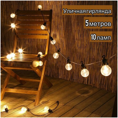 Уличная гирлянда лофт 5м /гирлянда 10 ламп от розетки/ декор студии / новогоднее украшение/