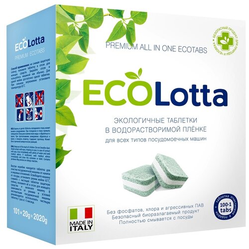 Таблетки для посудомоечной машины Lotta Ecolotta All in 1, 100 шт., коробка