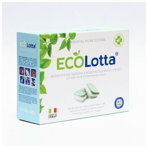 Таблетки для посудомоечной машины Lotta Ecolotta All in 1, 30 шт., 0.6 кг, коробка
