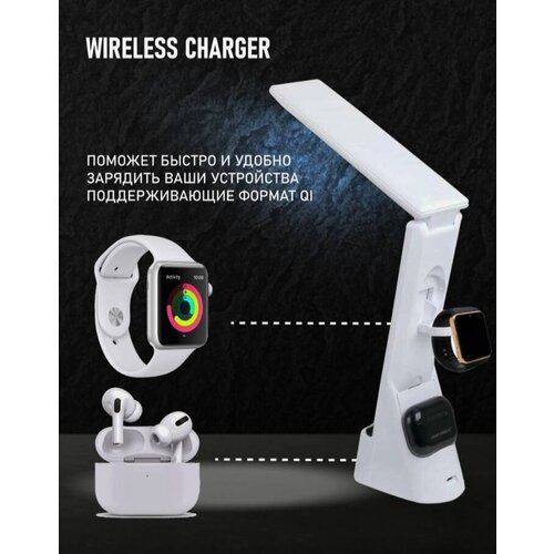 Беспроводное зарядное устройство 4 в 1, Лампа настольная, Беспроводная зарядка, Док-станция для телефона, наушников и часов