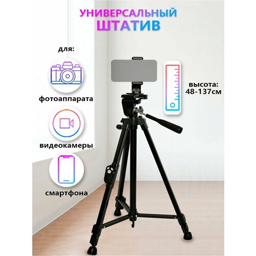 Универсальный штатив для смартфона или камеры с держателем, тренога, трипод 137 см