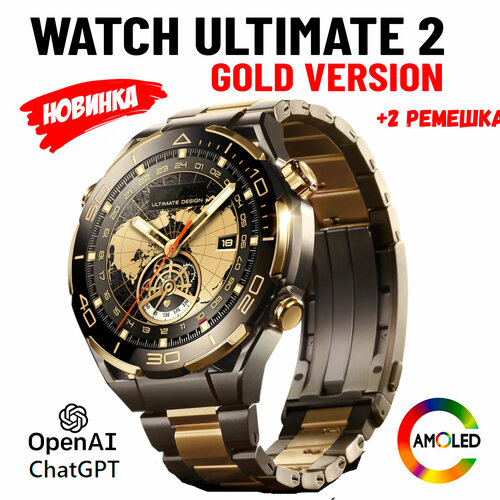Смарт часы мужские Premium, Новинка 2024 / Amoled экран + компас 360 / в комплекте идет 2 ремешка