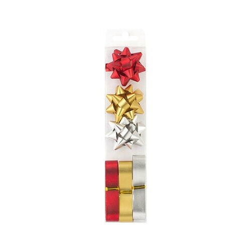 Декоративный Бант 5см и Лента 2м Трио сатиновый золотой/серебрянный/красный,6 шт