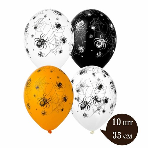 Набор шаров хэллоуин Паутина Пауки, 10 шт, 14"/35см