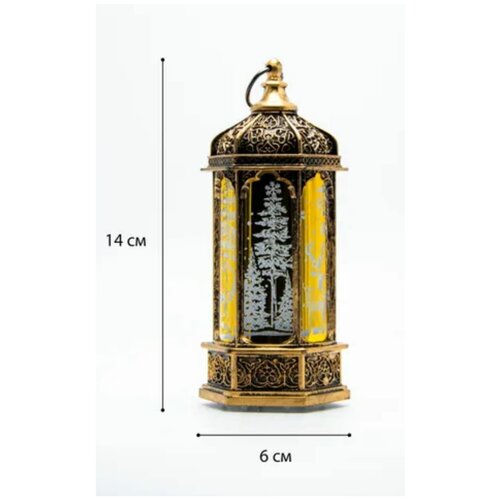 Новогодний фонарик с подсветкой Новогодний лес, 14 см, под бронзу