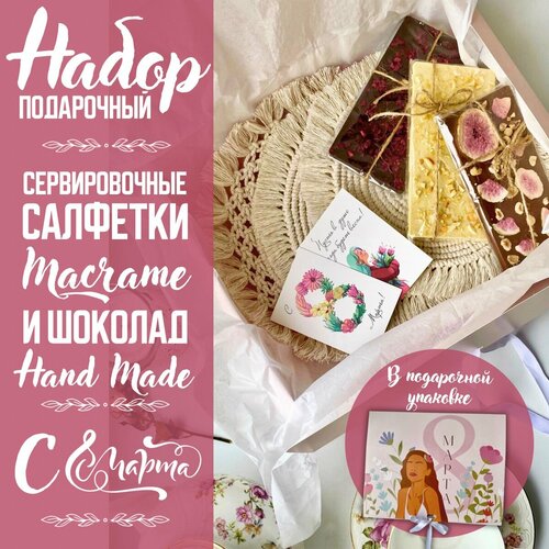 Подарочный набор Macramolli на 8 марта салфетки сервировочные и шоколад ручной работы