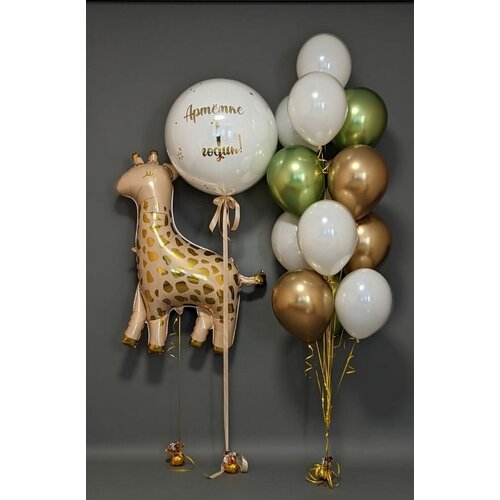 Набор воздушных шаров с гелием из латекса и фольги на день рождения Жираф + Баблс 14 штук