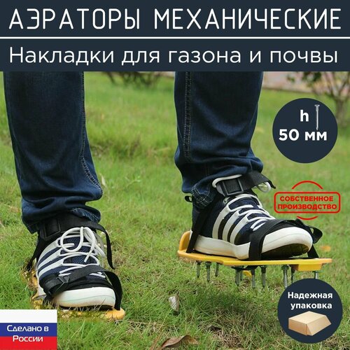 Подошва для аэрации газона (почвы), с шипами - 50мм, сталь, Профессиональные мокроступы усиленные, желтые, ЗСК, Maker's