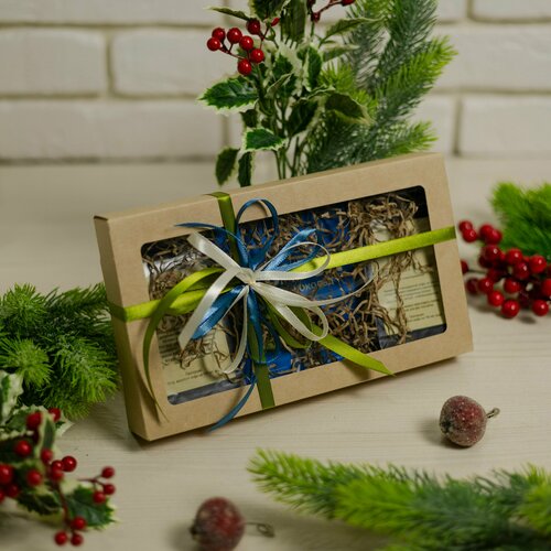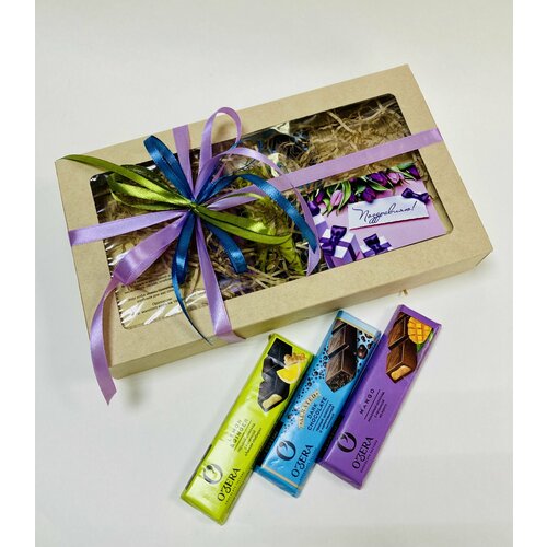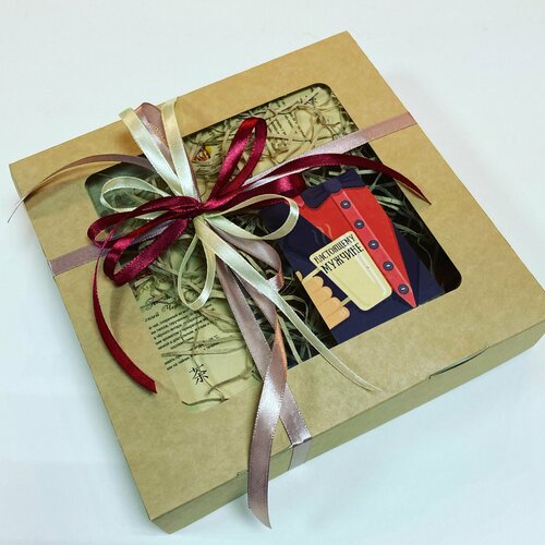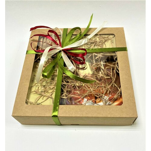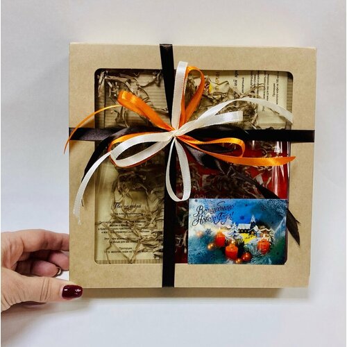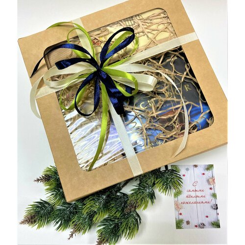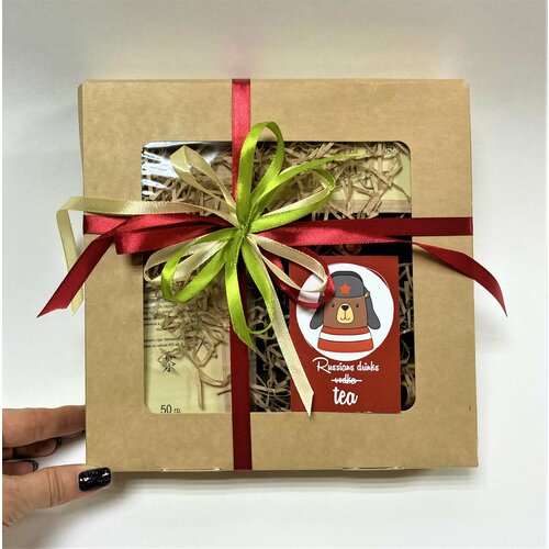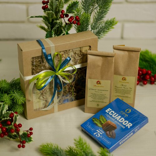 Подарочный набор из 2-х видов натурального чая (ассам и Имбирный апельсин) по 50 гр. и шоколада в коробке с окошком/ Подарок мужчине