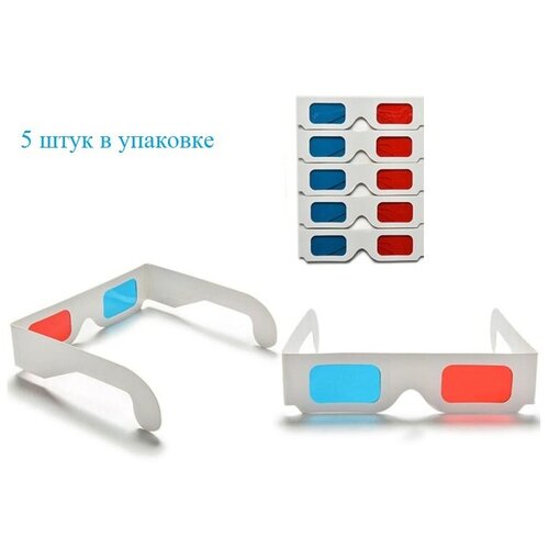 Универсальные картонные 3D очки анаглифные красный-синий 5шт/уп