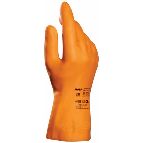 Перчатки латексные MAPA Industrial/ Alto 299, хлопчатобумажное напыление, размер 9 (L), оранжевые
