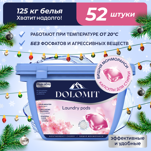 Капсулы для стирки белья универсальные MARABU серия DOLOMIT "вишня монморанси", 52 капсулы