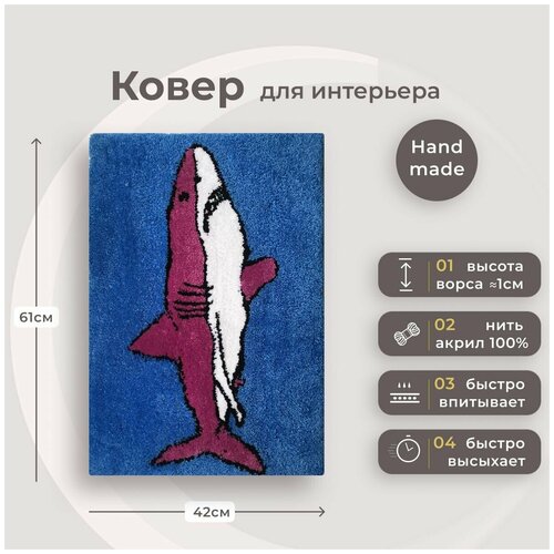 Коврик прикроватный, Коврик придверный, Ковер "Акула", 0.6 x 0.4 м