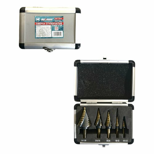 Набор сверл ступенчатых HSS по металлу, 5 предметов, кейс, "MAXIMUM" MX 12844