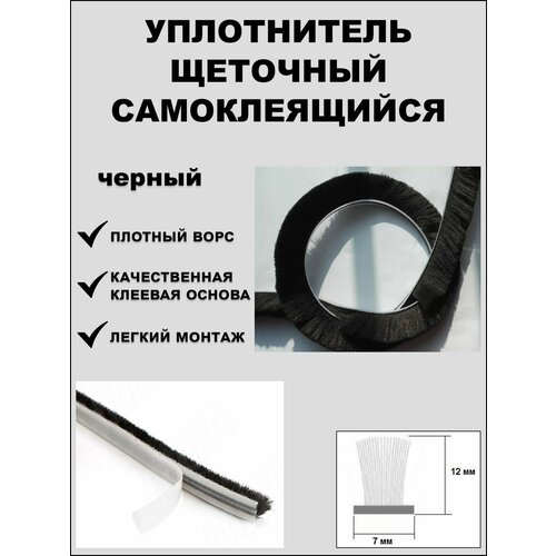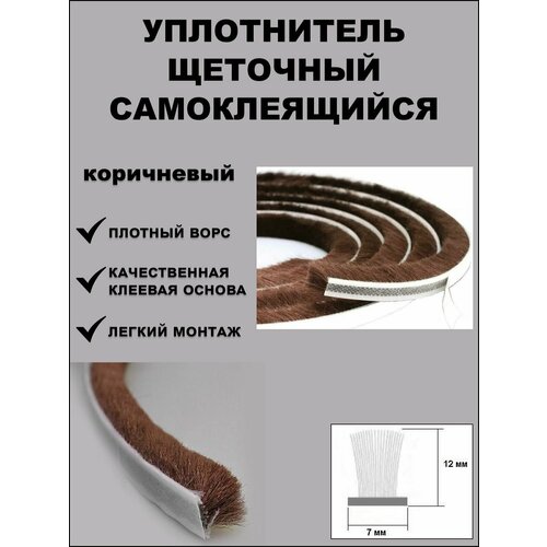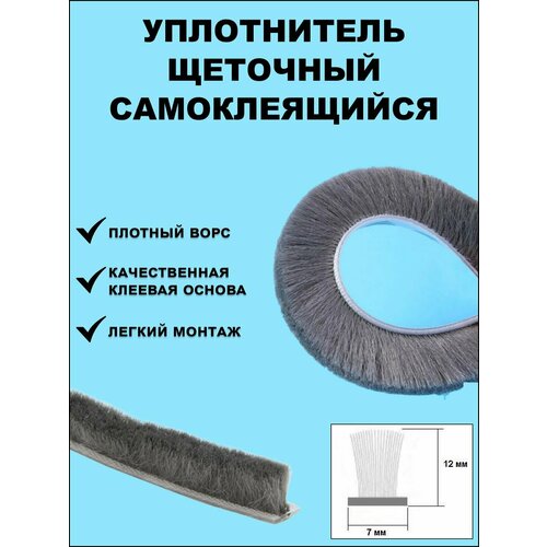 Щеточный уплотнитель (шлегель) самоклеящийся 7х12мм (длина ворса 12мм) 5 метров