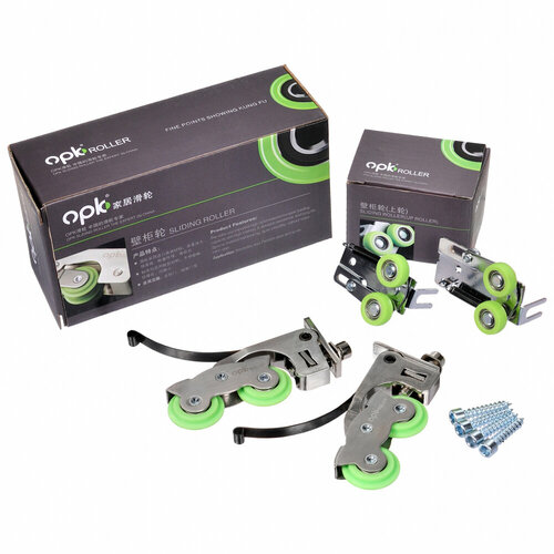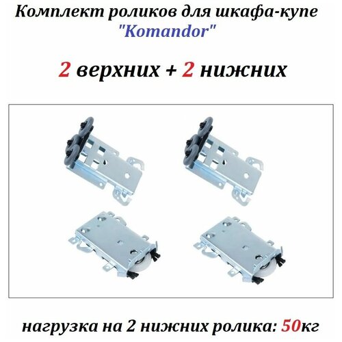 Комплект роликов, колёс для шкафа-купе под стальную систему Komandor/ Командор (2 верхних + 2 нижних), 25кг на 1 колесо