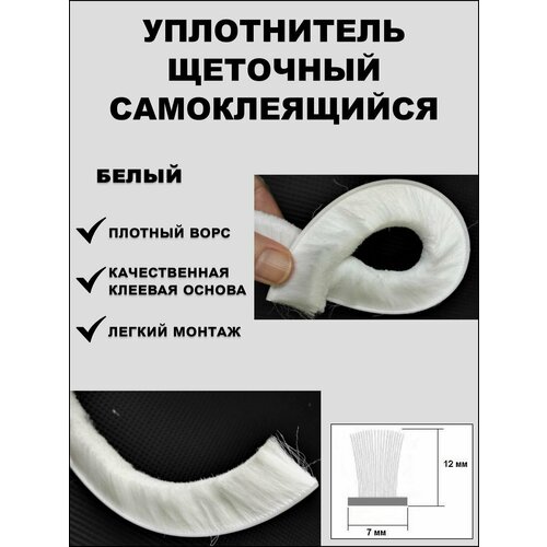 Щеточный уплотнитель (шлегель) самоклеящийся 7х12мм (длина ворса 12 мм), 10 метров