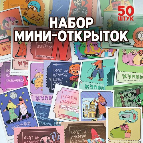 Набор мини открыток для кофейни. 50 штук