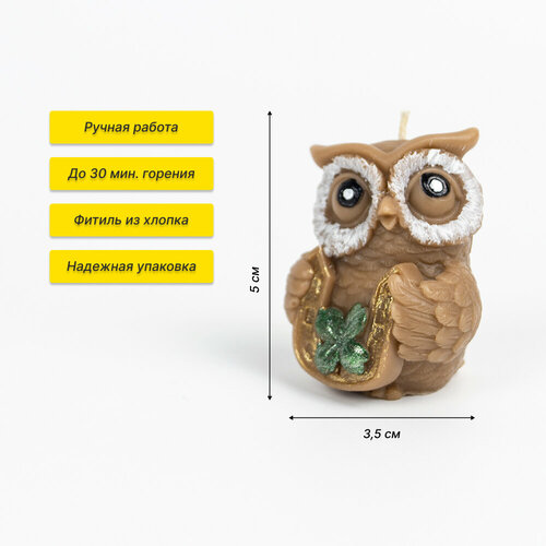 Свеча Сова с клевером | Интерьерная восковая свеча | Вес: 27 гр