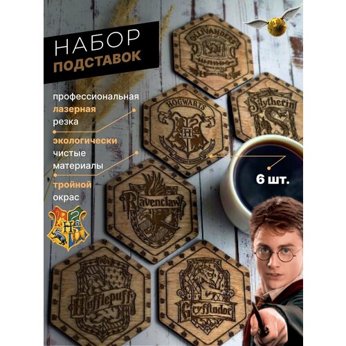 Подставка под горячее/Подстаканник под горячее /комплект Эмблемы факультетов Хогвартса6шт/Подставки для стакана Гарри Поттер