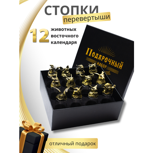 Набор рюмок с головами животных в коробке/ Стопки перевертыши / Рюмки для коньяка водки / Золотой цвет