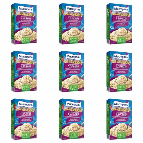 Мистраль Хлопья Смесь 5 злаков 400 гр 9 шт