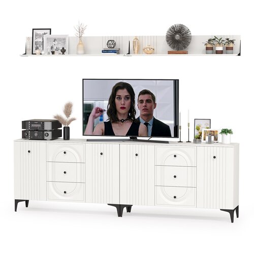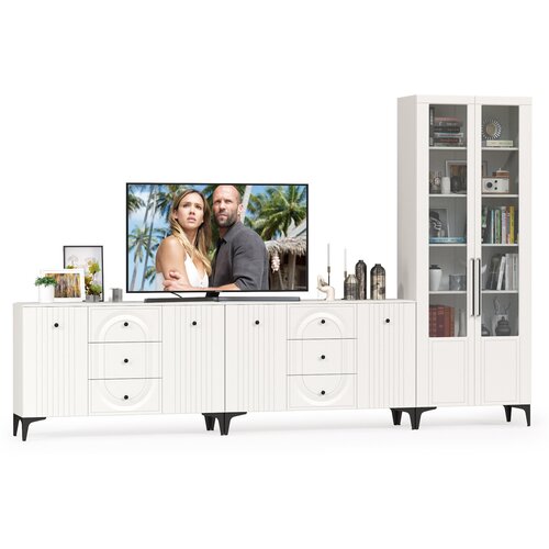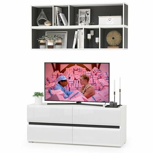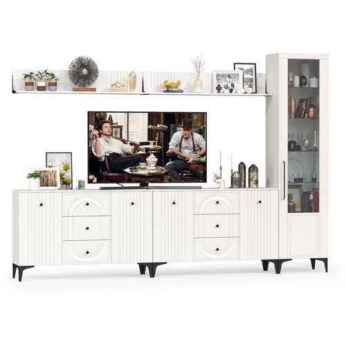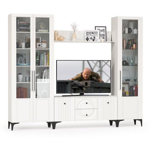 Гостиная Mobi Сидней Комплектация № 03 Корпус: Белый/Чёрный/Фасады: Мдф Белый Глянец
