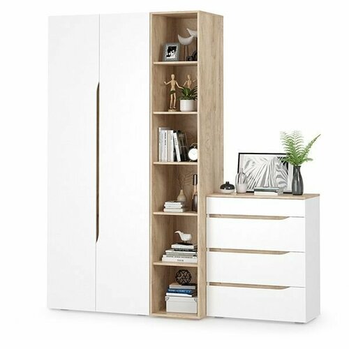 Шкаф двухстворчатый Mobi Муссон 13.198 + 13.349 Стеллаж + 13.97 Комод Белый/Дуб Эндгрейн Элегантный