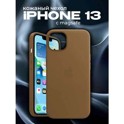 Кожаный чехол на iPhone 13 с MagSafe, кофейный