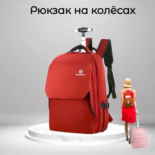 Рюкзак на колесах с выдвижной ручкой Темно-красный