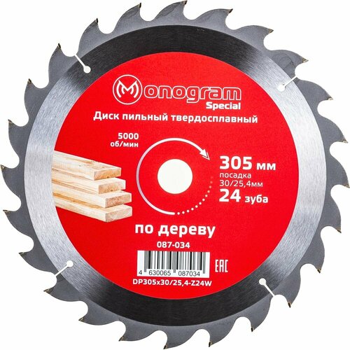 Диск пильный твердосплавный Special (305х30/25.4 мм; 24 зуба) MONOGRAM 087-034