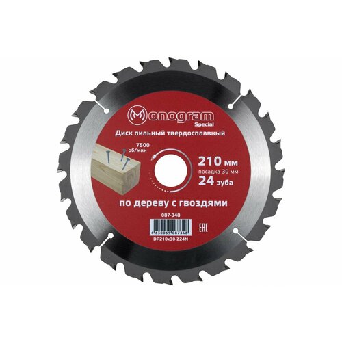 Диск пильный твердосплавный Special (210х30 мм; 24 зуба) MONOGRAM 087-348
