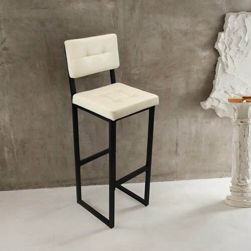 Стул барный металлический кухонный со спинкой (молочный велюр)