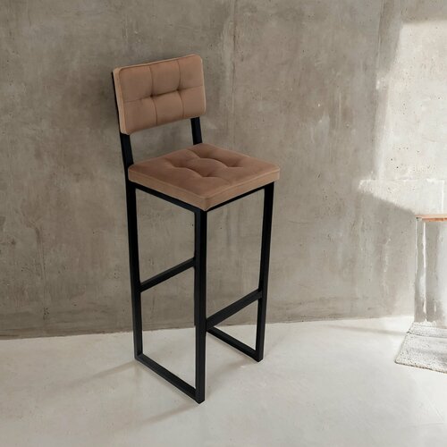 Стул барный металлический кухонный со спинкой (коричневый велюр)