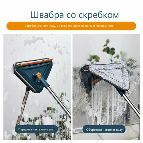 Швабра универсальная для уборки, для мытья окон и полов с вращающейся насадкой