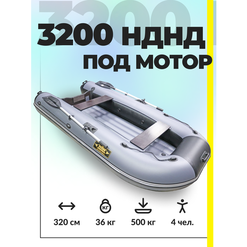Лодка ПВХ надувная под мотор Муссон 3200 НД для рыбалки с надувным дном и веслами, серый/черный